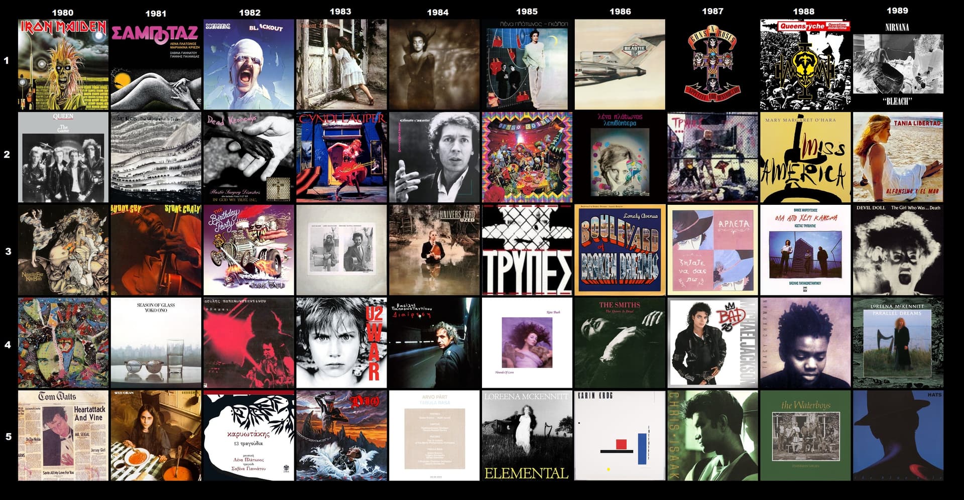 Να 'μαι κι εγώ εδώ μετά από κάνα 2-3 χρόνια που είχα να ποστάρω! Η αλήθεια είναι ότι σας βλέπω και σας καμαρώνω και σε αυτό το νήμα, και κυρίως στο άλλο (εξαιρετικό btw), και έχει σταθεί αφορμή να ξεθάψω πολύ πράμα από την δεκαετία του '70. Δεν αποφάσισα πάντως να συμμετέχω διότι είμαι κλασικός φυγόπονος και ούτε μόνο 5 άλμπουμς ανά έτος μπορώ να επιλέξω, αλλά και το ranking πάντα το μισούσα - ανέκαθεν στις λίστες μου έβαζα σε παρένθεση το πούστικο ‘in random order’! Αλλά μιας και κάνετε συνολικό απολογισμό της δεκαετίας ας καταθέσω κι εγώ την αποψάρα μου, και βλέπουμε μελλοντικά για το άλλο (τι βλέπουμε, αν για το '70 δεν έφταναν οι 5 θέσεις για το '80 δεν θα φτάνουν ούτε οι 25…).